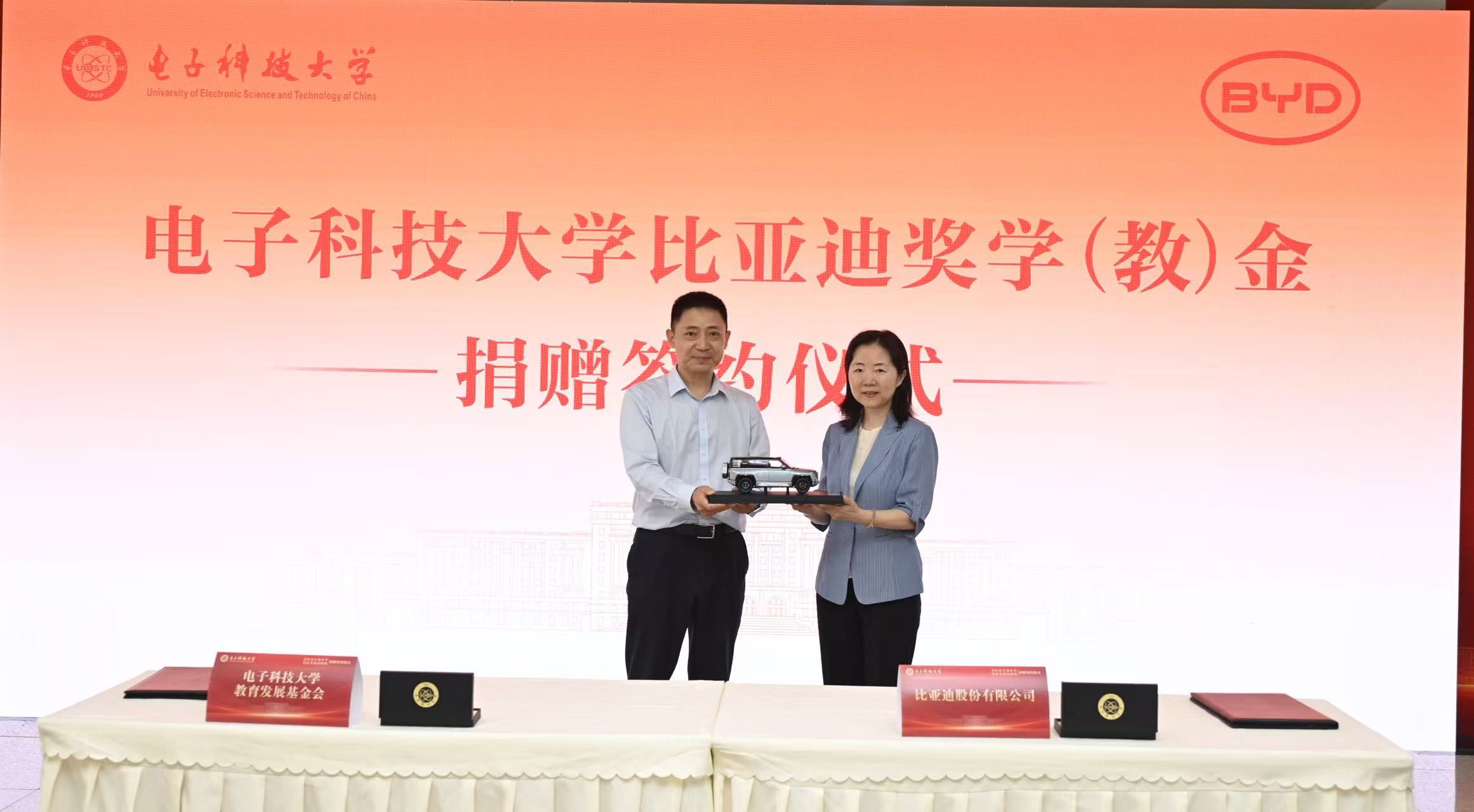 在与会嘉宾的共同见证下,此次捐赠仪式圆满完成!电子科技大学比亚迪奖学(教)金的设立,是校企共同迈出的重要一步,能够助力校企双方在联合技术攻关、共建研发平台、协同育人等方面结出更丰硕的成果。